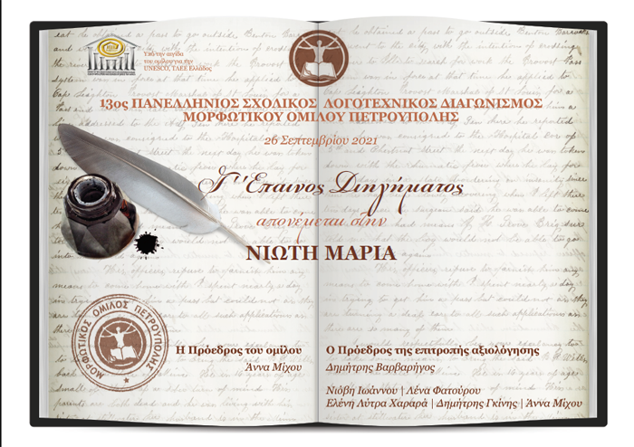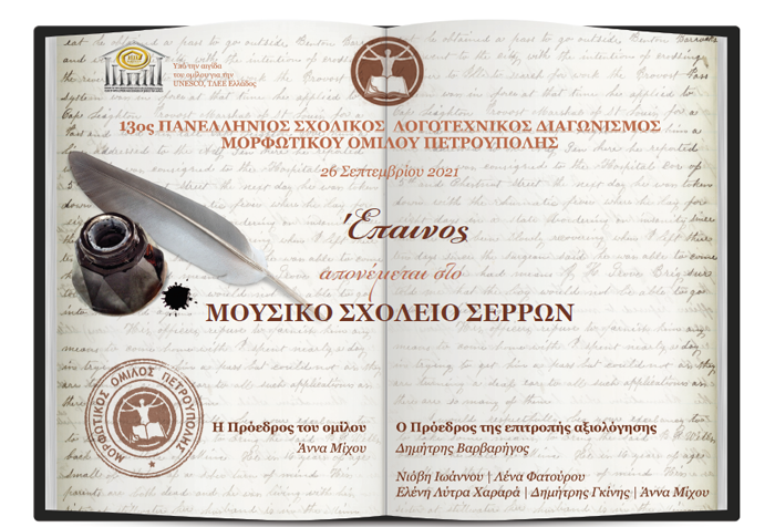 Ο Σύλλογος Διδασκόντων του Μουσικού Σερρών συγχαίρει θερμά τη μαθήτρια του Μουσικού Σχολείου Σερρών Νιώτη Μαρία του Β1 για την διάκρισή της στον 13ο Πανελλήνιο Σχολικό Λογοτεχνικό  Διαγωνισμό Μορφωτικού Ομίλου Πετρούπολης και εύχεται πολλές ανάλογες επιτυχίες και στο μέλλον.
